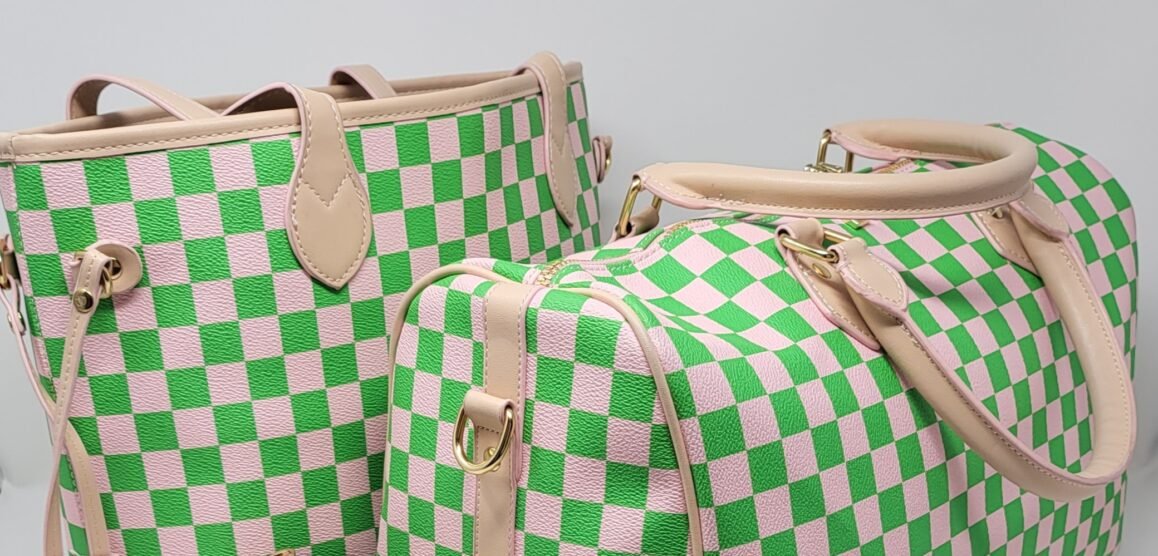 Stiletto Nation Boutique - Pretty Luxe Bundle - Pink and Green Checkered Handbags